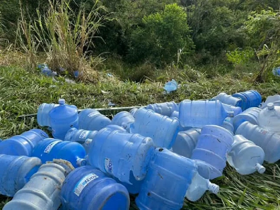 A carga de água mineral espalhou-se pela via, e moradores locais saquearam parte dela.