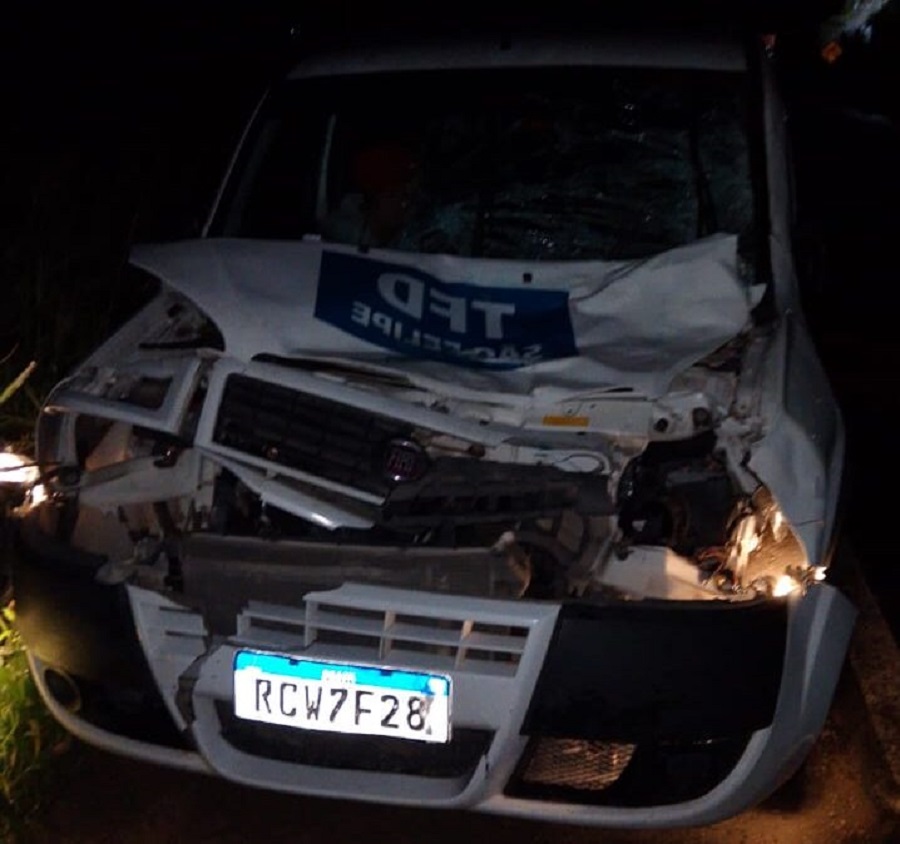 Um veículo da Secretaria Municipal de Saúde de São Felipe, que realizava o transporte de pacientes com destino a Salvador, colidiu com um cavalo na madrugada do último domingo (07), na BR-101, nas proximidades do município de Sapeaçu.