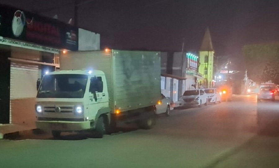 Um veículo estacionado foi atingido pela porta de um caminhão baú que passava pela rua XV de Novembro, em Elísio Medrado, na noite desta terça-feira (22), ficando com um buraco na chaparia traseira e arranhões.