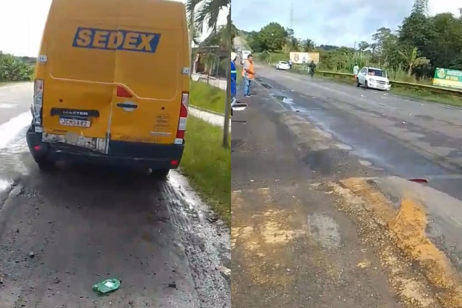 Na manhã desta segunda-feira (25) uma carreta perdeu os freios ao descer a ladeira do Taitinga e atingiu três veículos na BA-046, estrada que liga Nazaré a Muniz Ferreira.