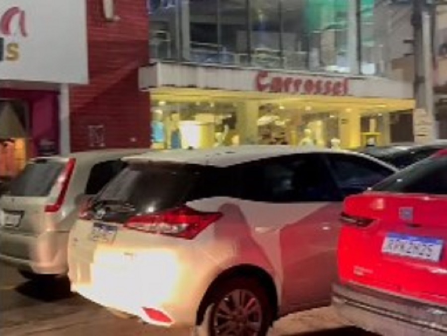 O cruzamento entre a Travessa 15 de Novembro e a Rua Landulfo Alves, no centro de Santo Antônio de Jesus, ficou completamente congestionado na noite desta segunda-feira (25).