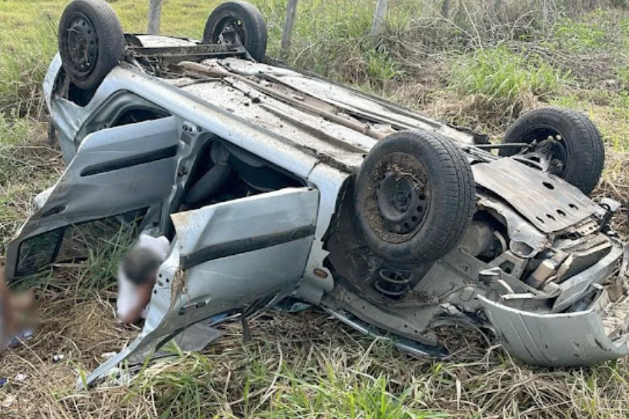 Carro capotou na BA-120 entre Castro Alves e Santa Teresinha
