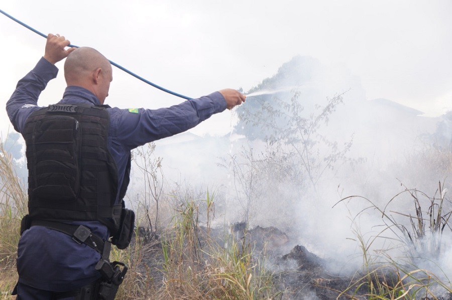 Com o apoio de uma moradora, que disponibilizou água de sua residência ao lado do terreno, foi possível conter o fogo e evitar maiores danos.