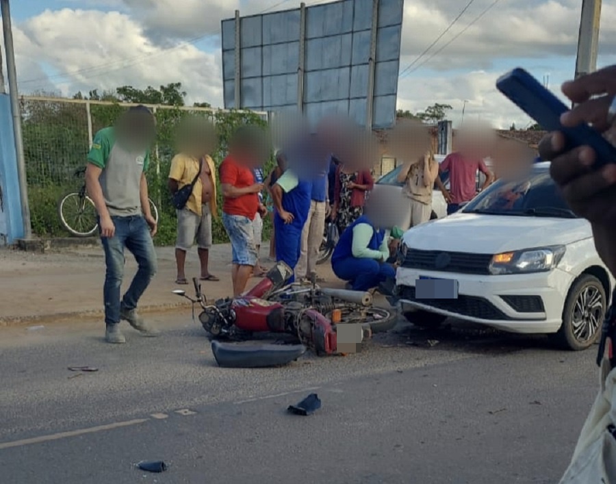 Um acidente envolvendo um carro e uma moto foi registrado na tarde desta quinta-feira (02), no bairro da Catiara, em Amargosa.
