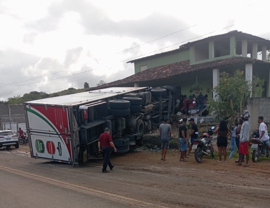 Uma carreta conduzida por um morador do Penedo, perdeu o controle, tombou, saiu da pista e colidiu violentamente contra o muro da varanda de uma residência, já na entrada do perímetro urbano da cidade, no sentido Santo Antônio de Jesus.