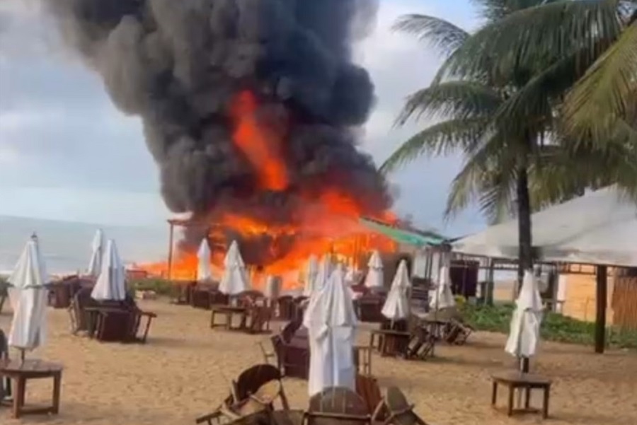 Quatro barracas de praia utilizadas por ambulantes pegaram fogo na manhã desta terça-feira (07) na Orla Norte de Porto Seguro, em um trecho próximo ao Complexo Axé Moi.