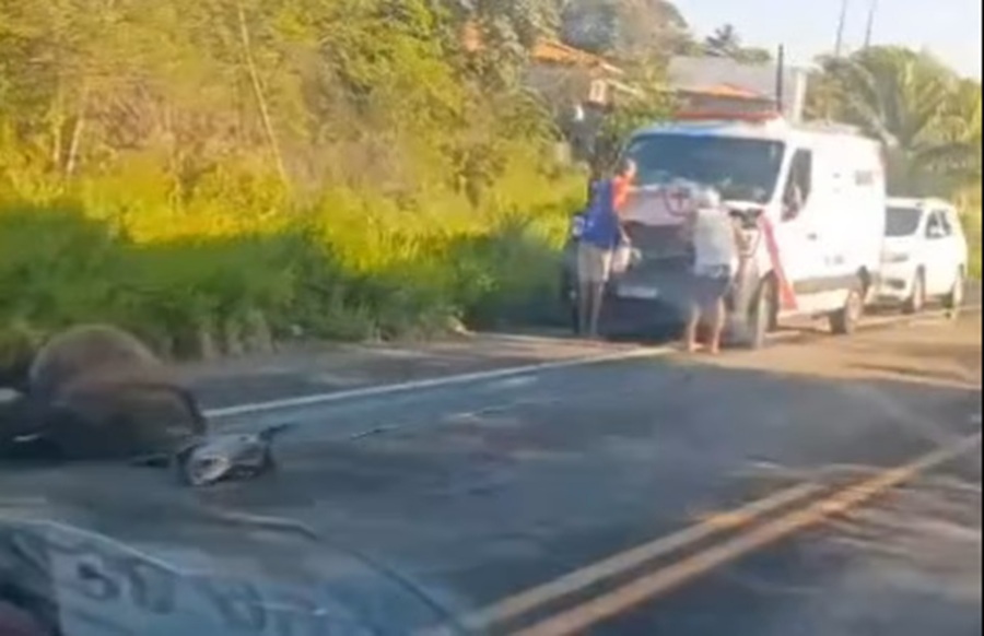 Ambulância bate animal solto na BA-001, próximo ao entroncamento de Mar Grande, em Vera Cruz