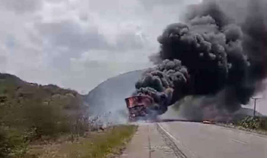 Uma carreta que transportava uma carga de alumínio pegou fogo enquanto transitava pela BR-116, no trecho do município de Itatim, na tarde desta segunda-feira (08).