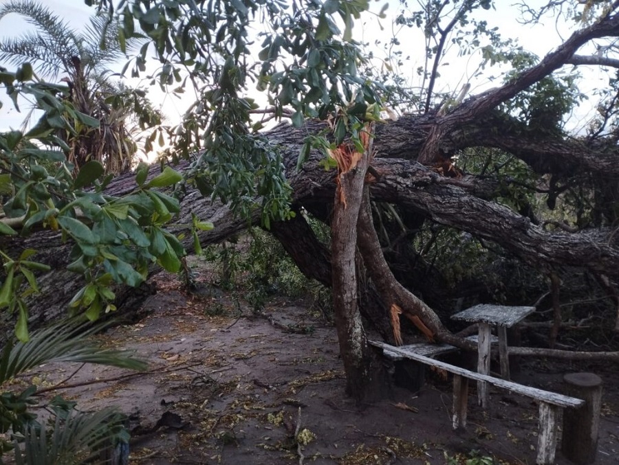 O famoso pé de Pau Ferro, no bar Pau do Chico, na localidade do Campo Alegre, zona rural de Santa Teresinha, foi ao chão com os fortes ventos da tarde deste sábado (03).