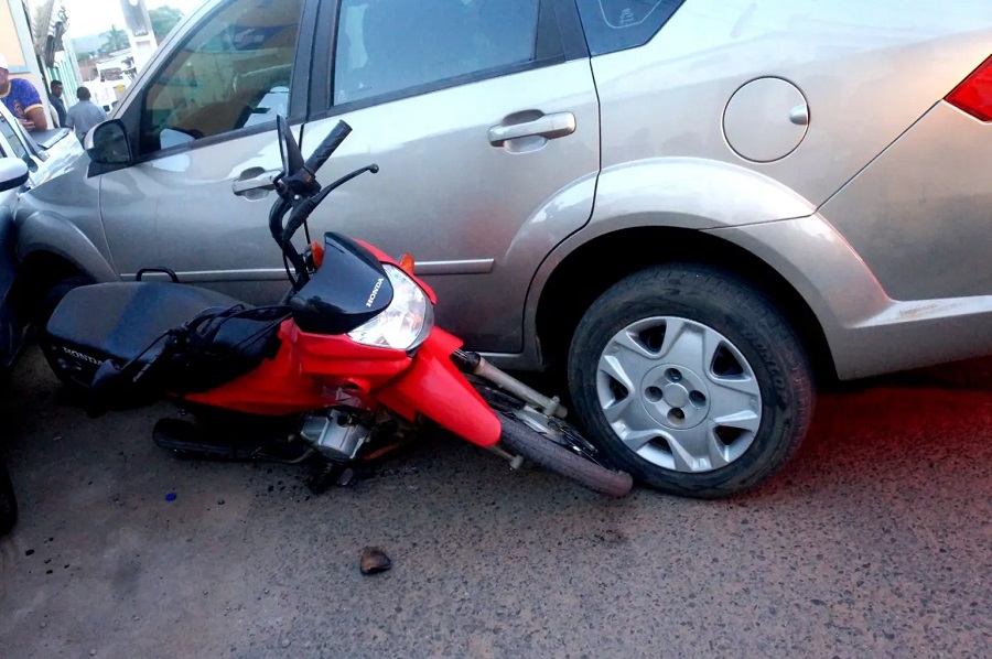 Um acidente envolvendo dois carros e uma moto deixou duas pessoas feridas no final da tarde desta terça-feira (10), em Brejões.