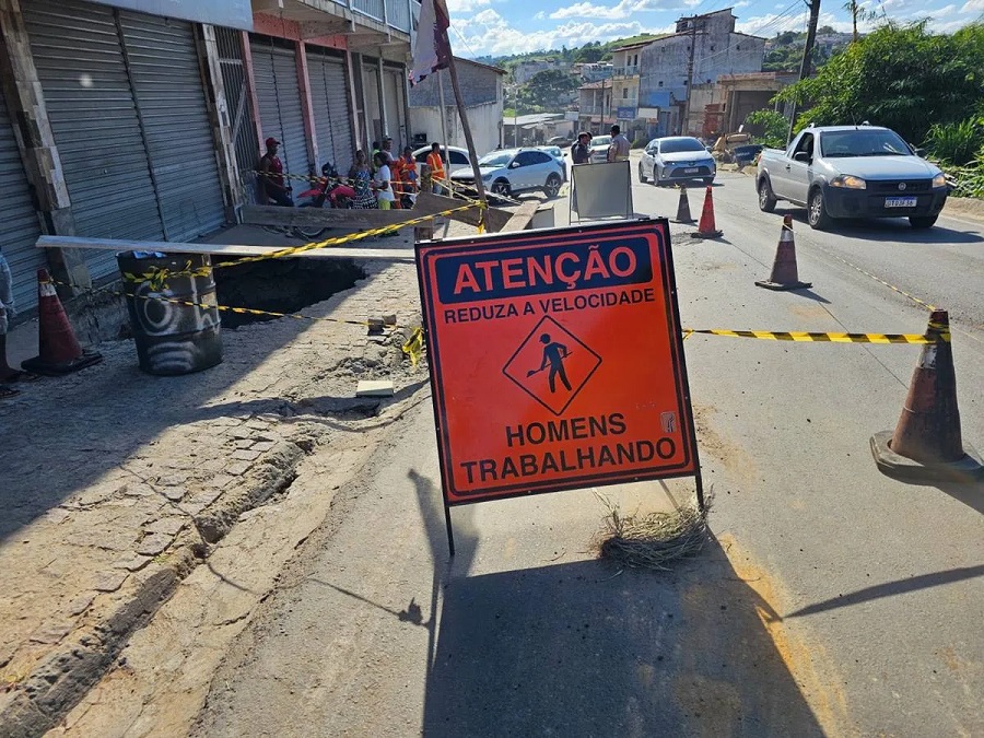 O tráfego na BR-420, na saída para Laje, em Mutuípe, funcionará em meia pista até que seja realizado o conserto do buraco que se abriu no local.