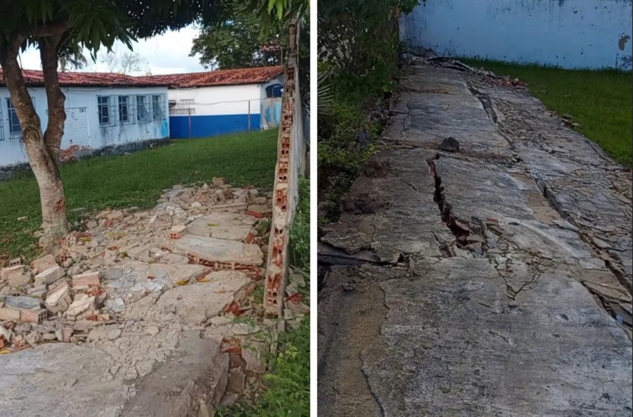 Parte do muro do fundo do Colégio Municipal Anísio Teixeira desabou na madrugada de domingo (15), em Santo Antônio de Jesus.